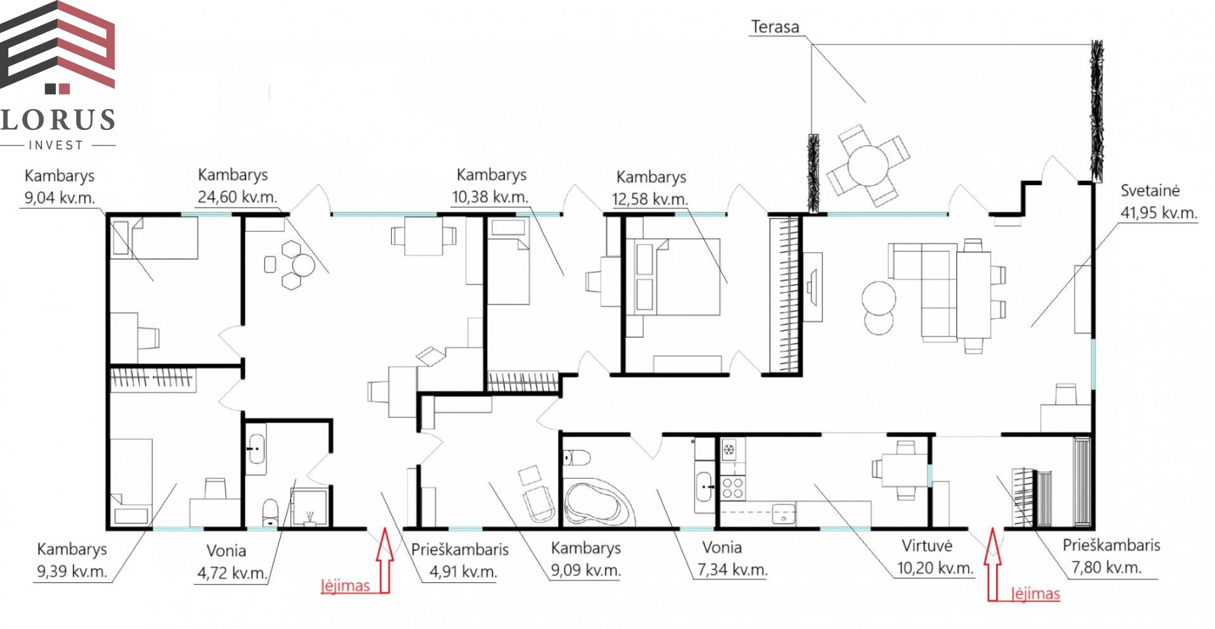 -Namas vieno aukšto – 152kv.m su ~15 arų nuosavu sklypu;