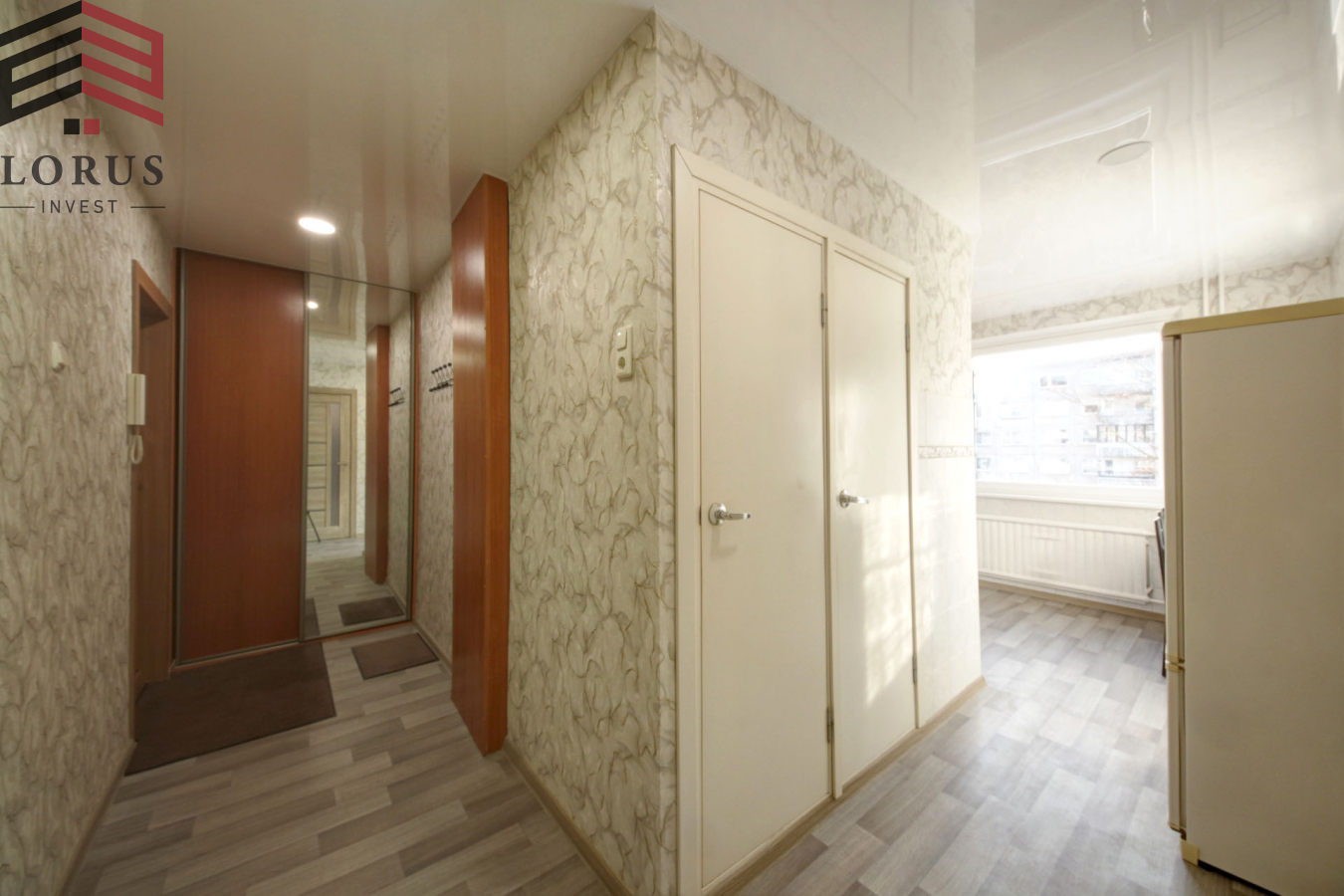 Bute yra suremontuotas įstiklintas balkonas.