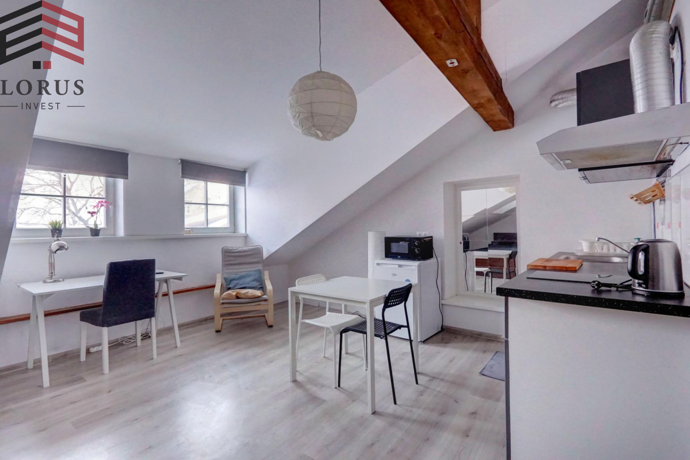-- Svetainės zona su virtuve;