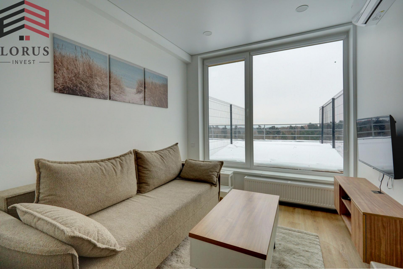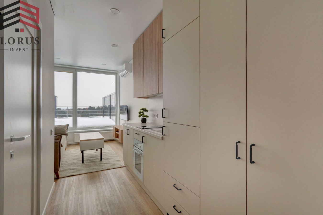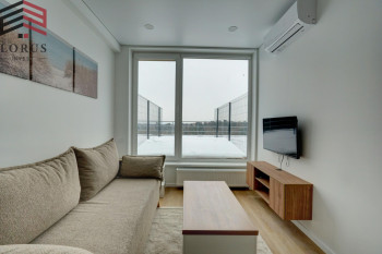 Nuomojamas visiškai naujai įrengtas studijos tipo butas su terasa ant stogo Baltupiuose, Ateities g.
