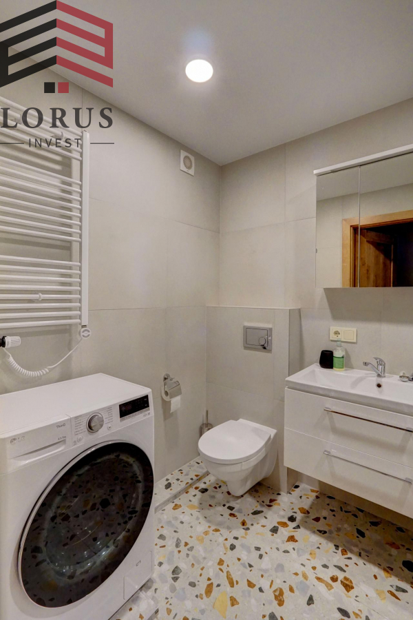 Butas modernaus, skoningo įrengimo, su reguliuojamu centriniu-kolektoriniu šildymu, nuomojamas su visa būtina buitine technika: skalbimo mašina, orkaitė, šaldytuvas, kaitlentė, indaplovė ir t.t.