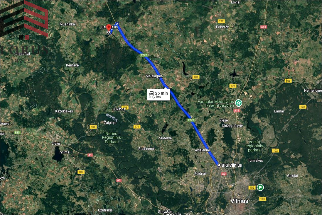 - Vilniaus centras automobiliu pasiekimas per 30 min.;