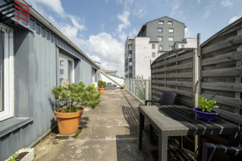 Didelė beveik 30 m² terasa – puiki vieta leisti laiką gryname ore: čia galima mėgautis saule, skaityti knygą, gerti rytinę kavą ar rengti jaukius pasisėdėjimus su šeima ir draugais. Lodžijoje taip pat yra galimybė įsirengti poilsio zoną.