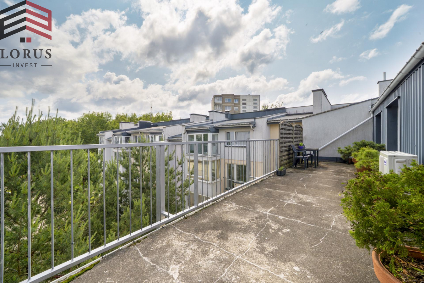 Parduodamas išskirtinis 3 kambarių butas su erdvia, beveik 30 m², terasa. Tai yra 65,1 m² gyvenamųjų patalpų, plius ~30 m², terasa. Butas yra ramioje ir žaliuojančioje miesto vietoje. Jis itin šviesus ir šiltas – langai orientuoti į rytus ir vakarus, tad natūralios šviesos netrūksta visą dieną.