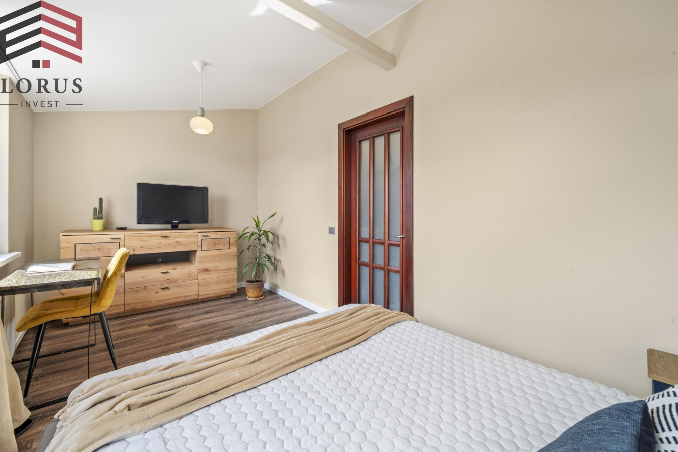 • Erdvi ~30 m² terasa viršutiniame aukšte su vaizdu į žalumą ir medžių viršūnes