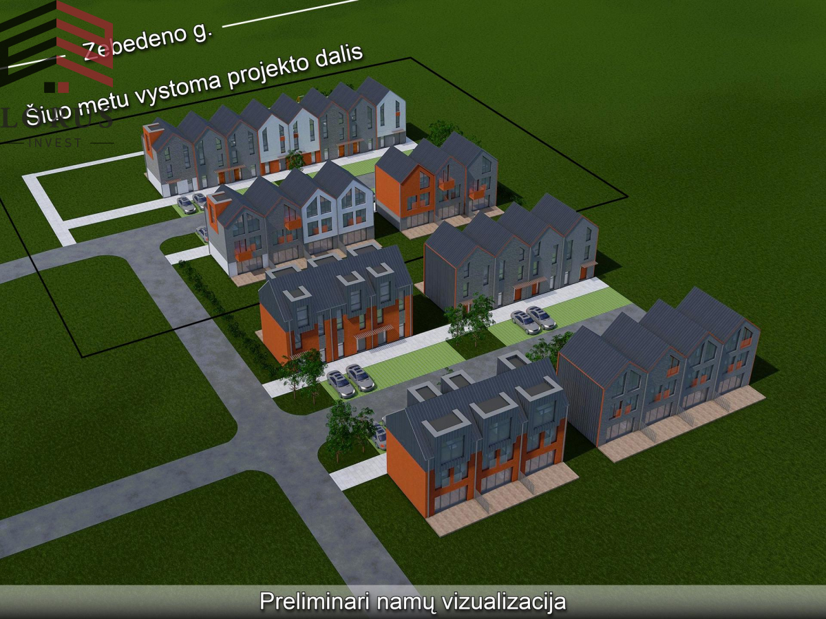 ◾Parkavimo vietos išklojamos trinkelėmis, privažiavimo iki namų kelias - asfaltuotas;