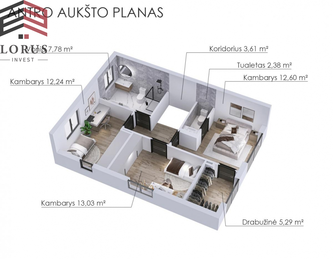 • Kambarių skaičius: 4 (3 iš jų miegamieji);