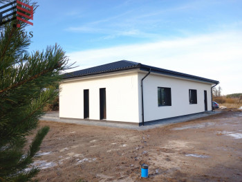 Parduodamas 137 kv.m. naujai pastatytas namas gražioje, aukštesnėje gamtinio reljefo vietoje. Modernios architektūros funkcionaliai suplanuotas vieno aukšto būstas. Čia rasite erdvią svetainės zoną, sujungtą su virtuve, bei keturis miegamuosius ir vonios kambarį. Aukštos namo vitrinos leis mėgautis natūralios šviesos gausa. Namai su puikiai sutvarkyta, aptverta, apželdinta teritorija, trinkelėmis išklotu kiemu, lauko terasa su išėjimu iš valgomojo.