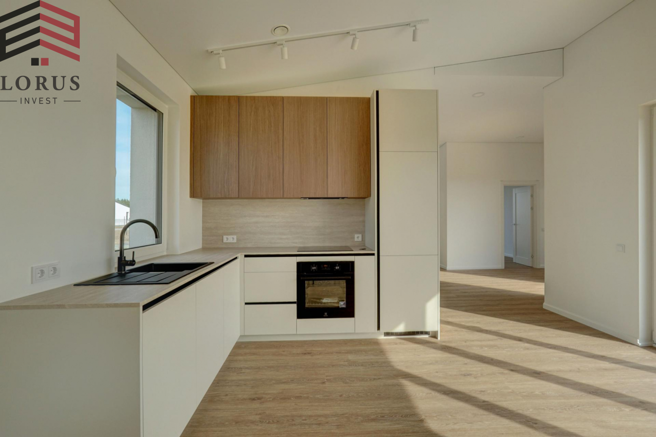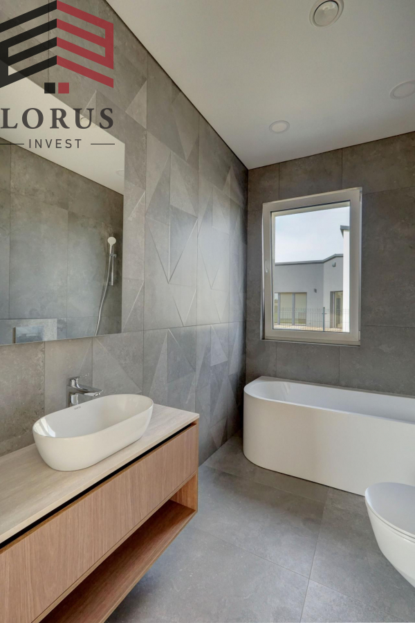 -- Naujai įrengtas, dar negyventas namas;