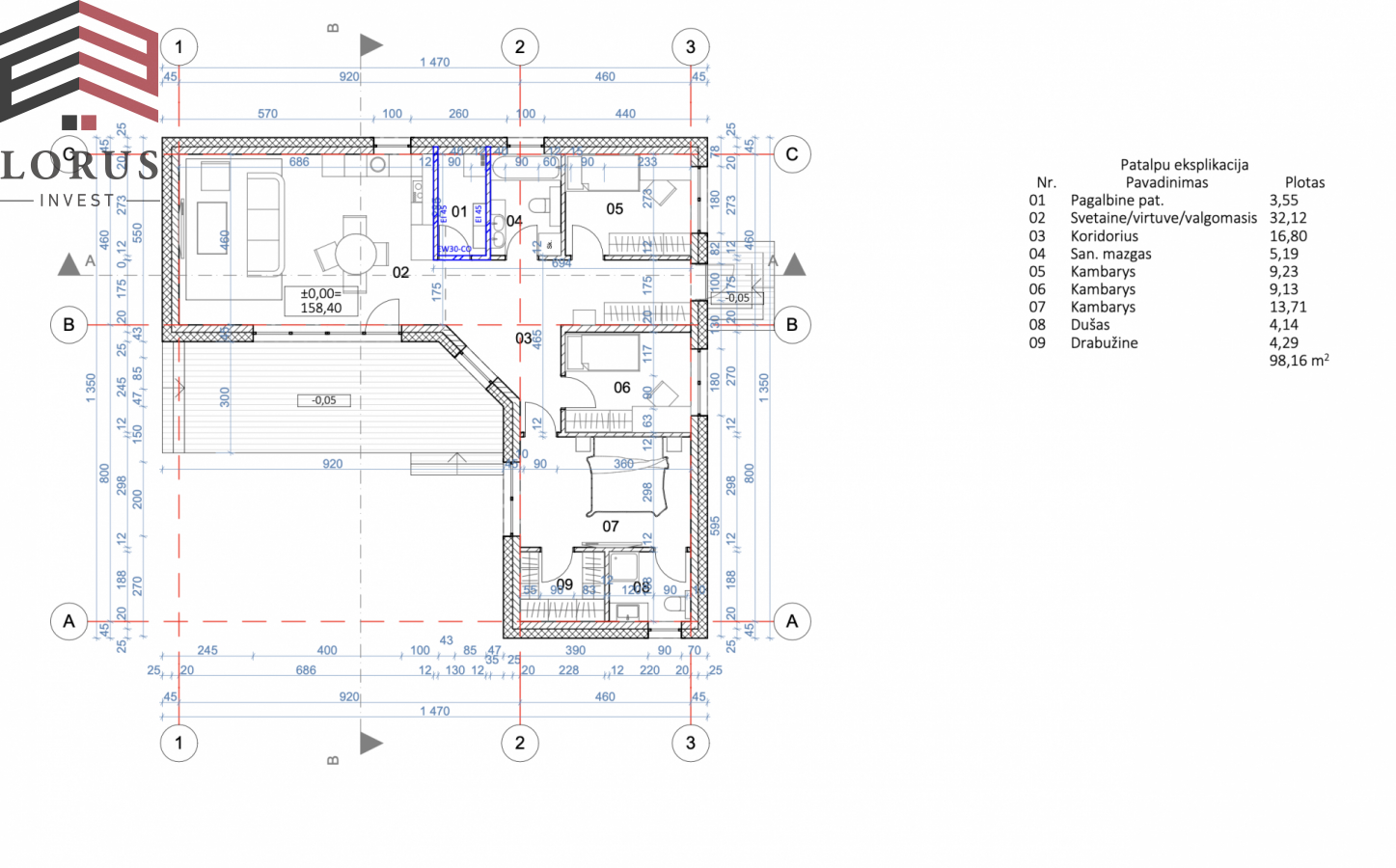 -- Šildymas: oras-vanduo šilumos siurblys, šildoma grindiniu šildymu;