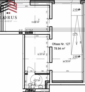 239.66 kv.m – 180 000 EUR (61.10 kv.m viršuje ir 178.56 kv.m -1 aukšte sandėliavimui).