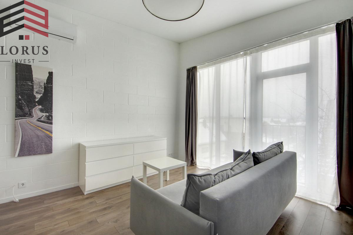 Butas 2015 m. statybos name, su aukštomis lubomis ir dideliais langais, šildomas grindiniu oras-vanduo šildymu, nuomojamas su visa reikalinga buitine technika - kaitlientė, orkaitė, skalbyklė-džiovyklė, kondicionierius.