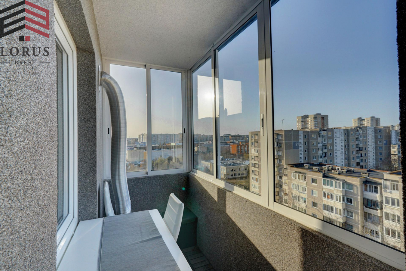 Butas 9-ame namo aukšte, su dviem įstiklintais balkonais į skirtingas namo puses. Bute yra tamsus ir skalbyklės kambariukai, tai pat rūsyje yra sandėliukas.